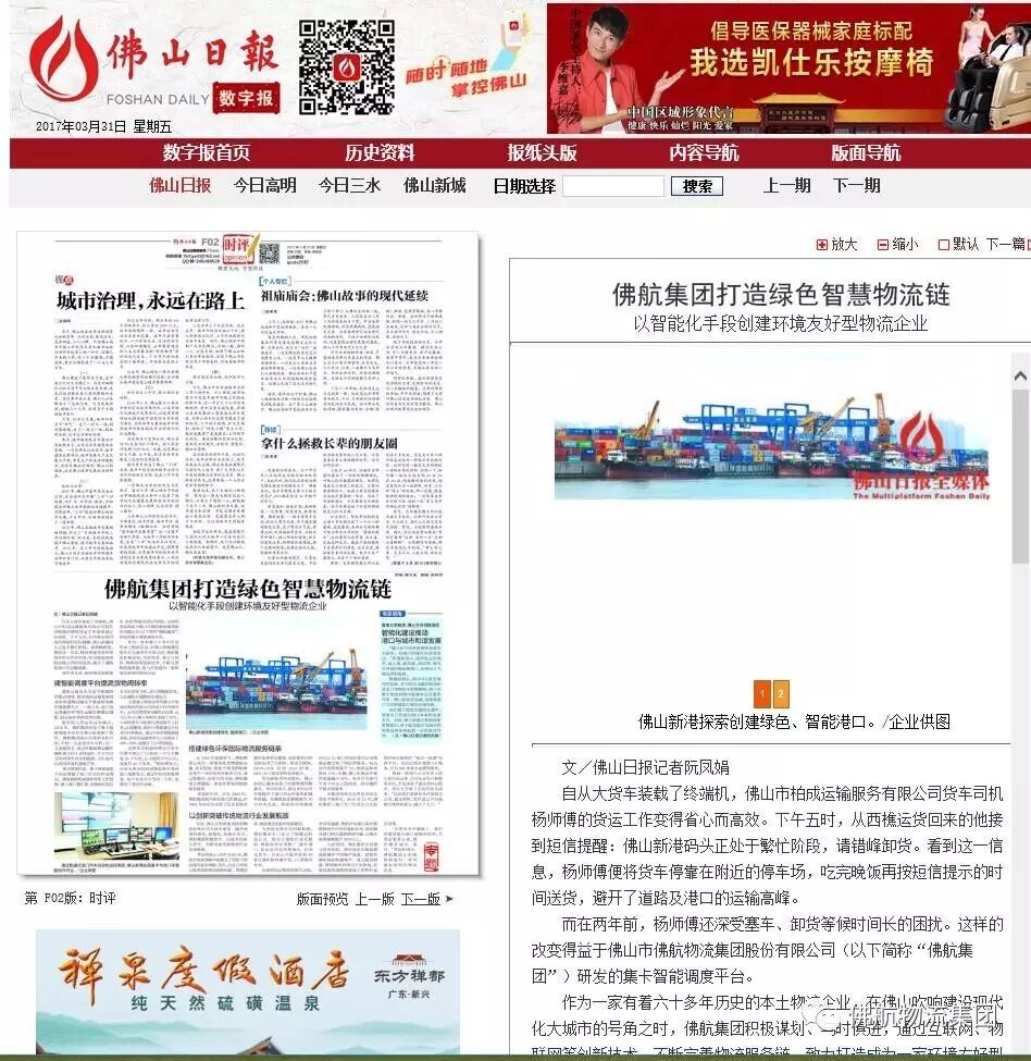 《佛山日报》3月31日专题报道《bst2222全球奢华游戏打造绿色智慧物流链》